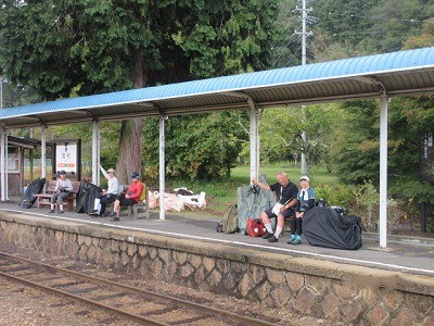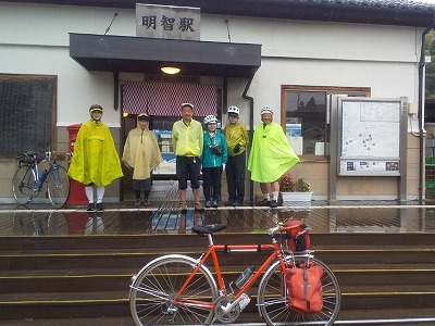 雨の中のスタートになりました。明知鉄道の明智駅にて