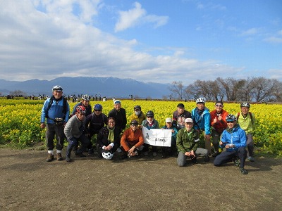 目的地 なぎさ公園の菜の花をバックに集合写真
